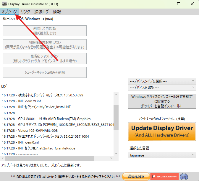 - アップデートで問題が起きたときは「AMD Cleanup Utility」か「DDU」