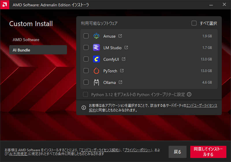 参考として、Virtual Desktopの推奨ドライバーバージョンを赤字で示してあります。大きな影響のない範囲内で最新のものを選ぶ場合は、25.20.xx.xxドライバーのAMD Software:Adrenaline Edition 25.12.1が無難なバージョンです。最新のAMD Ryzen チップセットドライバー(7.11.26.2142)と組み合わせての利用をおすすめします。