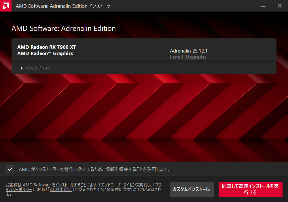 25.9.1や25.9.2からアップデートする場合は、ドライバーのブランチが切り替わる事になるため、セーフモードで「AMD Cleanup Utility」を使用してからインストールを行うことをおすすめします。