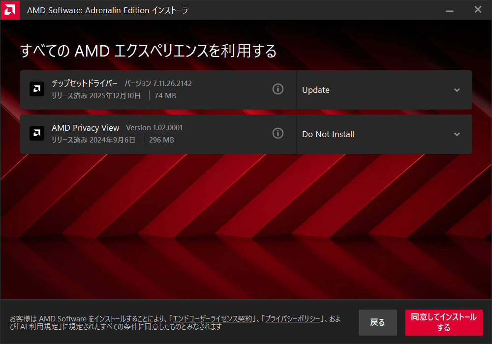 - 【統合パッケージ】whql-amd-software-adrenalin-edition-25.12.1-win11-c.exe