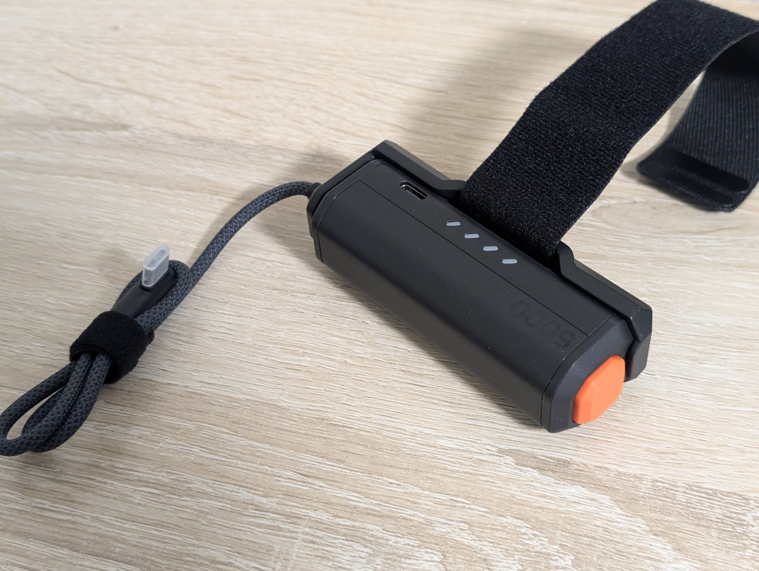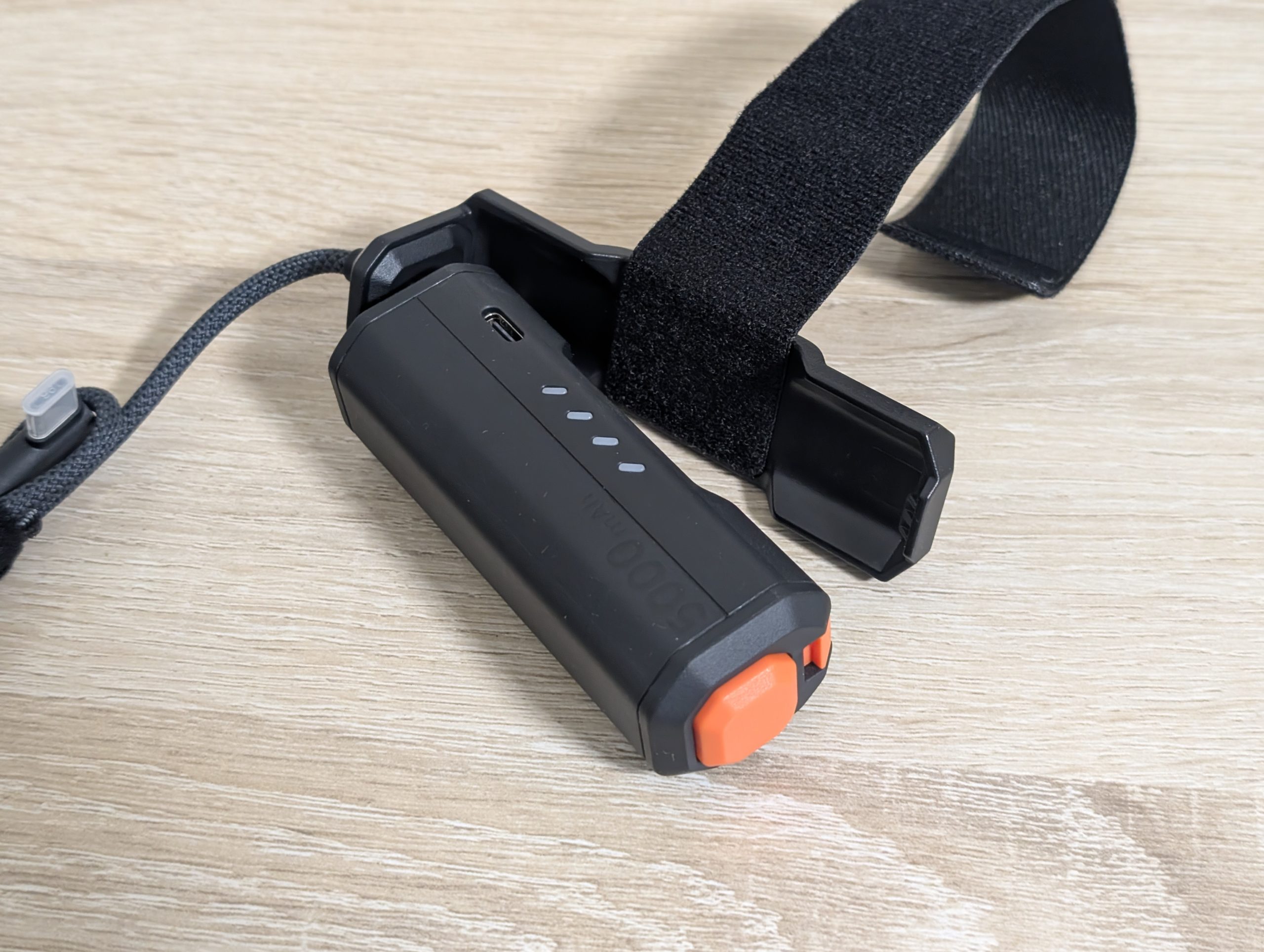 KIWI designのヘッドストラップに限らず、マジックテープで巻き付けられるような場所であればどこにでも取り付け可能です。バッテリーと台座が分離しているお陰か、しっかりと固定できて確かな安定感があります。一般的なモバイルバッテリーを巻き付けるよりも、P5000バッテリーを使った方が安全に固定できると思いました。