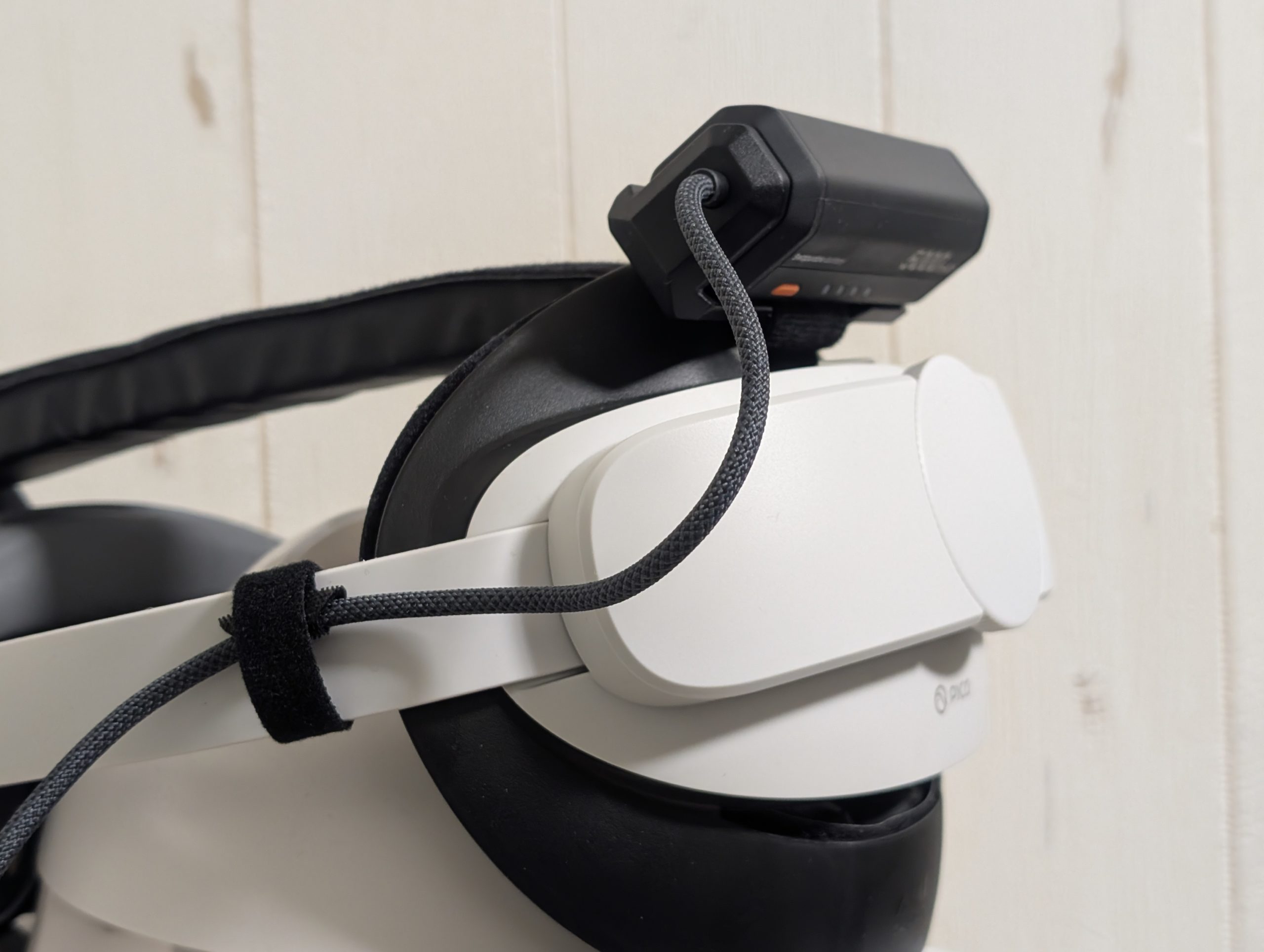 このP5000バッテリーが専用品ではなく汎用性の高い設計なので、今後違う製品に乗り換えたとしても有効活用できるのが良い点だと感じます。P5000バッテリーはマグネットで着脱するタイプではないので、VRヘッドセットを被った状態でのバッテリー交換で少し手間取るのが難点です。その反面、しっかりと固定されるので安心感はあります。