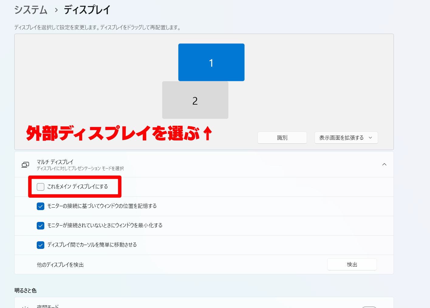 2, ディスプレイの接続先を確認する