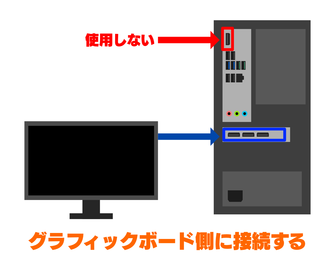 ディスプレイがグラフィックボード側に接続されていることを確認する