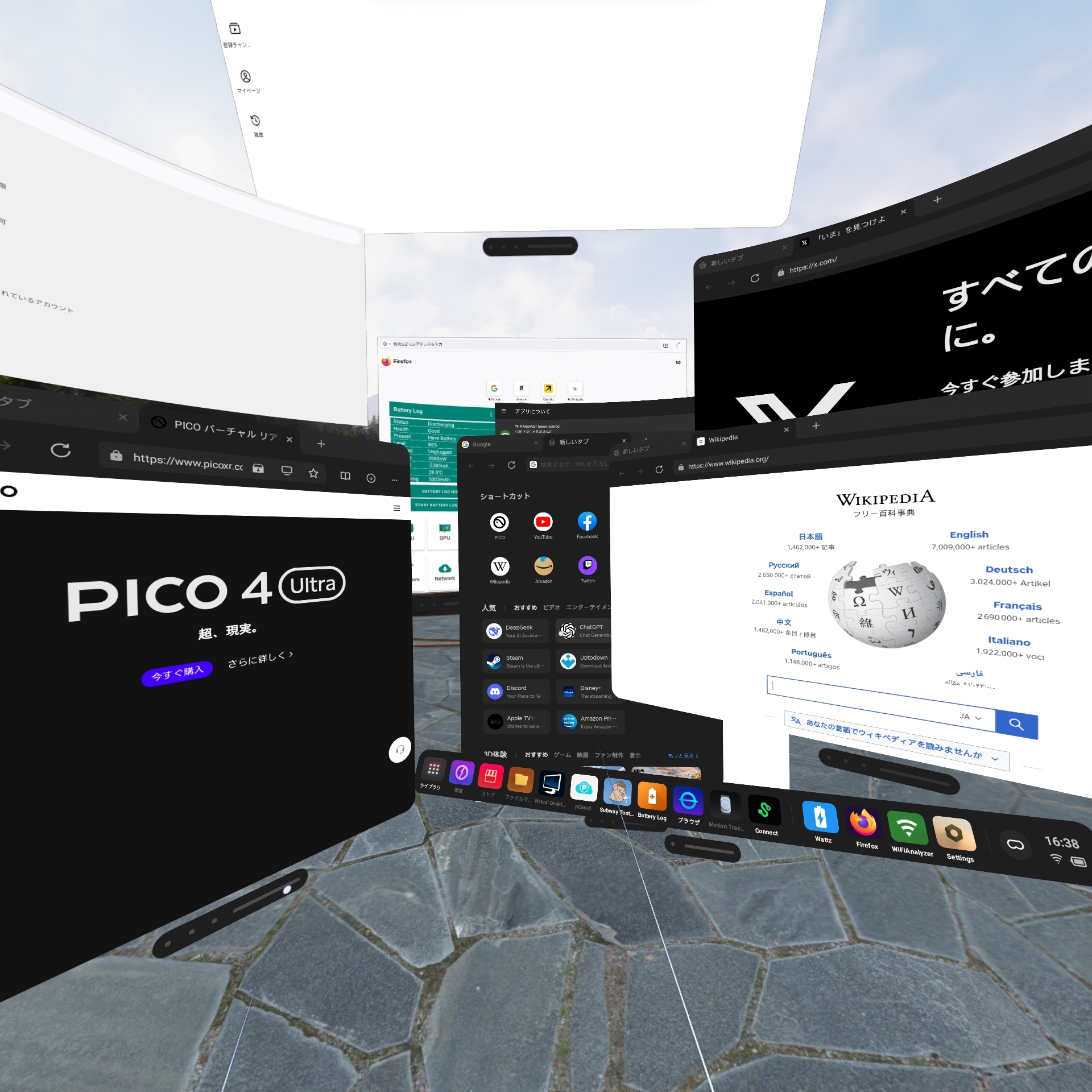 視野の広さはPICO 4特有とも言えるメリットです。軽さや着け心地も重要ですが、個人的に特に推したい点でもあります。