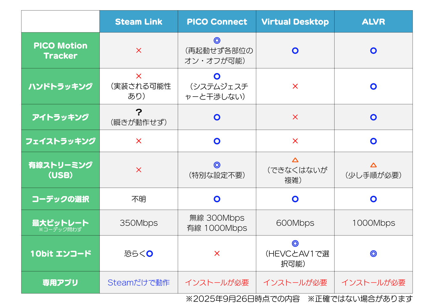 他の製品やPICO 4からの乗り換えや、初めてのVR機器として検討する際の参考になればと思って書きました。発売当時の少し古い情報も残っていますが、2025年11月に大きく書き直しをしてあります。PICO 4 Ultra単体でVRChatをプレイする場合も少しだけ紹介しておきますね。