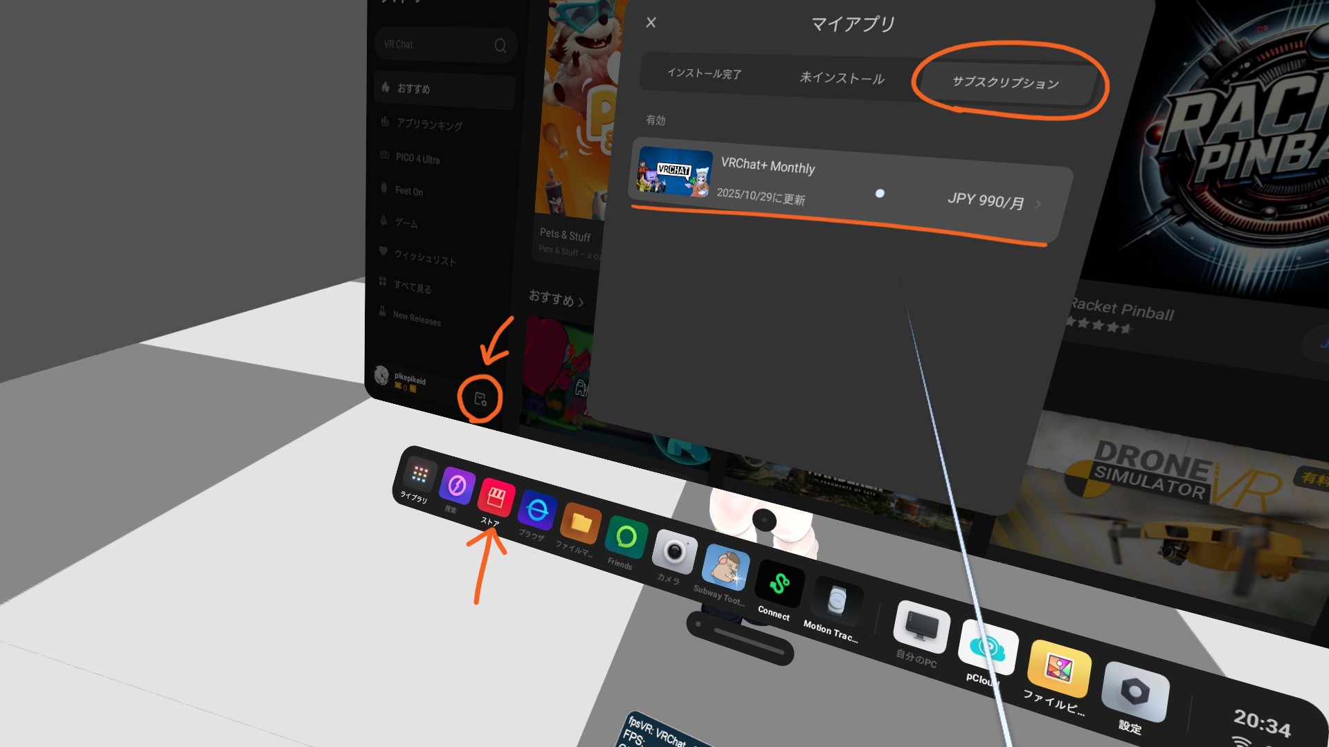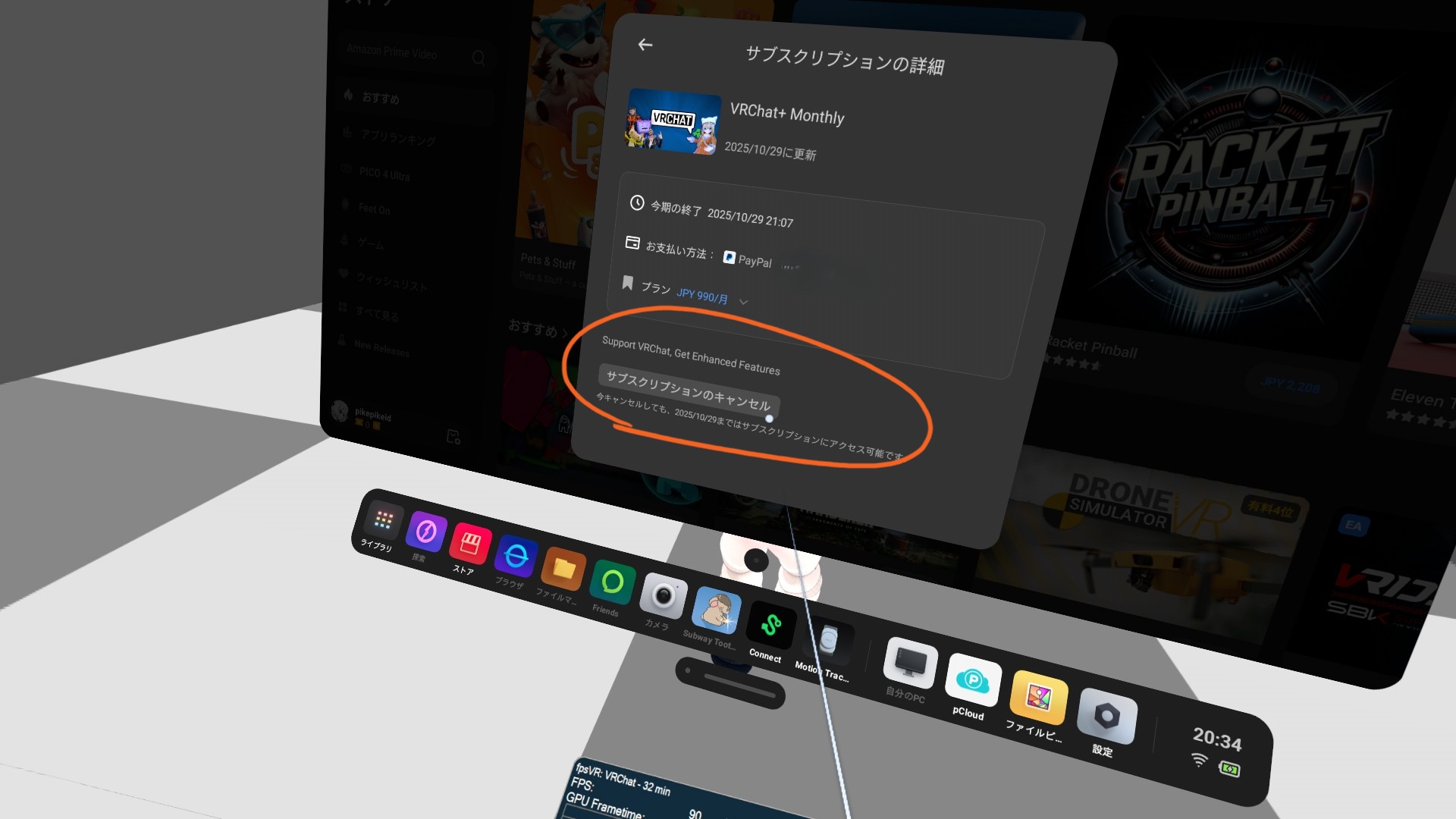 PICO単体版のVRChatでは、VRC+を月額990円または年額9,900円で契約が可能です。これはMetaで契約するのと同じ価格です。