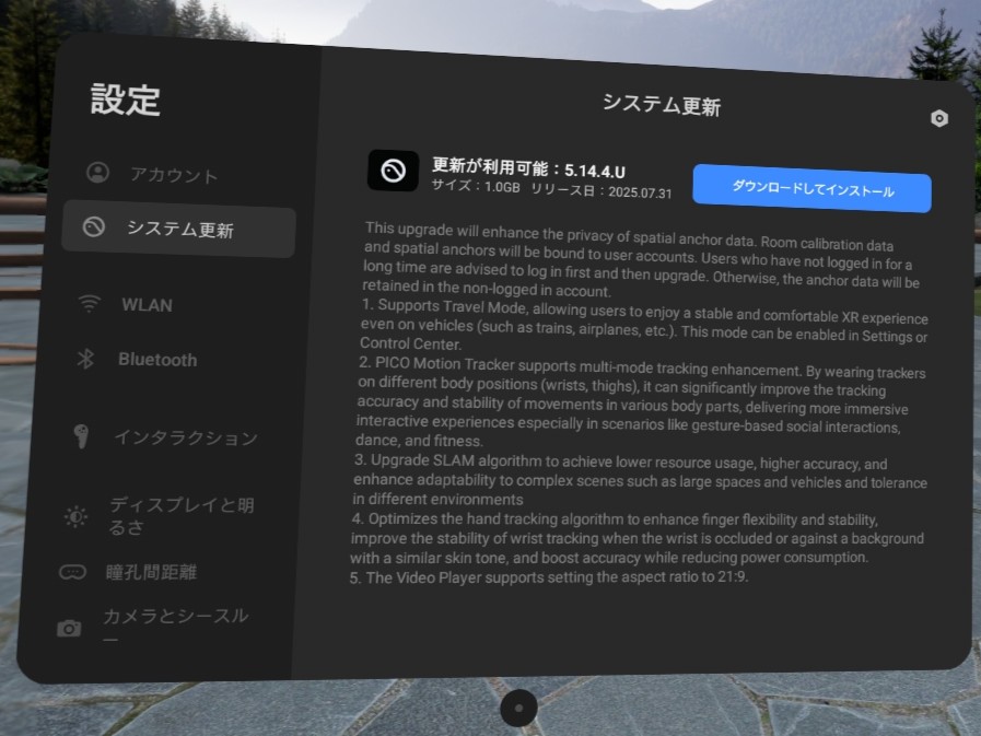2025年7月31日にPICO 4 Ultra向けにPICO OS 5.14.4.Uがリリースされました。8月13日の夜からより多くのデバイスに対して配信されているようです。
