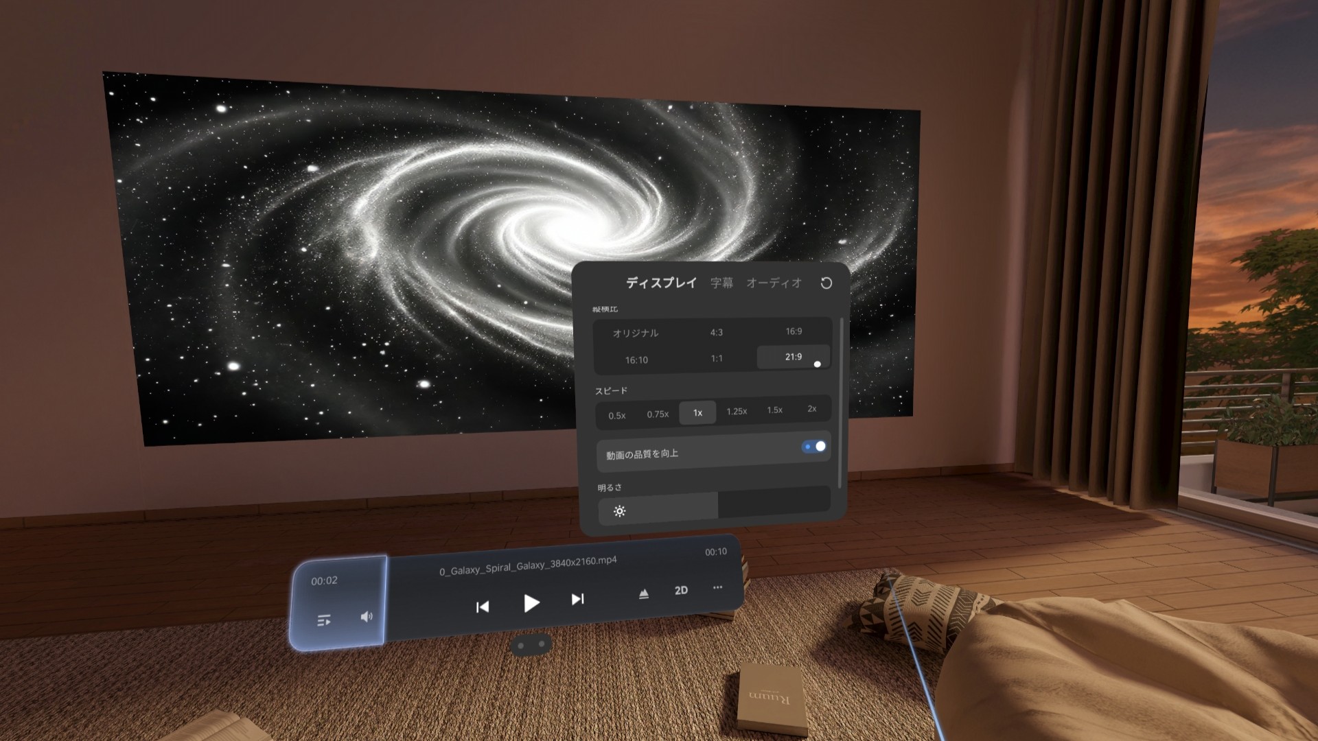 PICO Playerアプリで動画を再生するときに、設定からアスペクト比21:9を選択できるようになりました。人によっては使いどころがある機能なのだと思います。