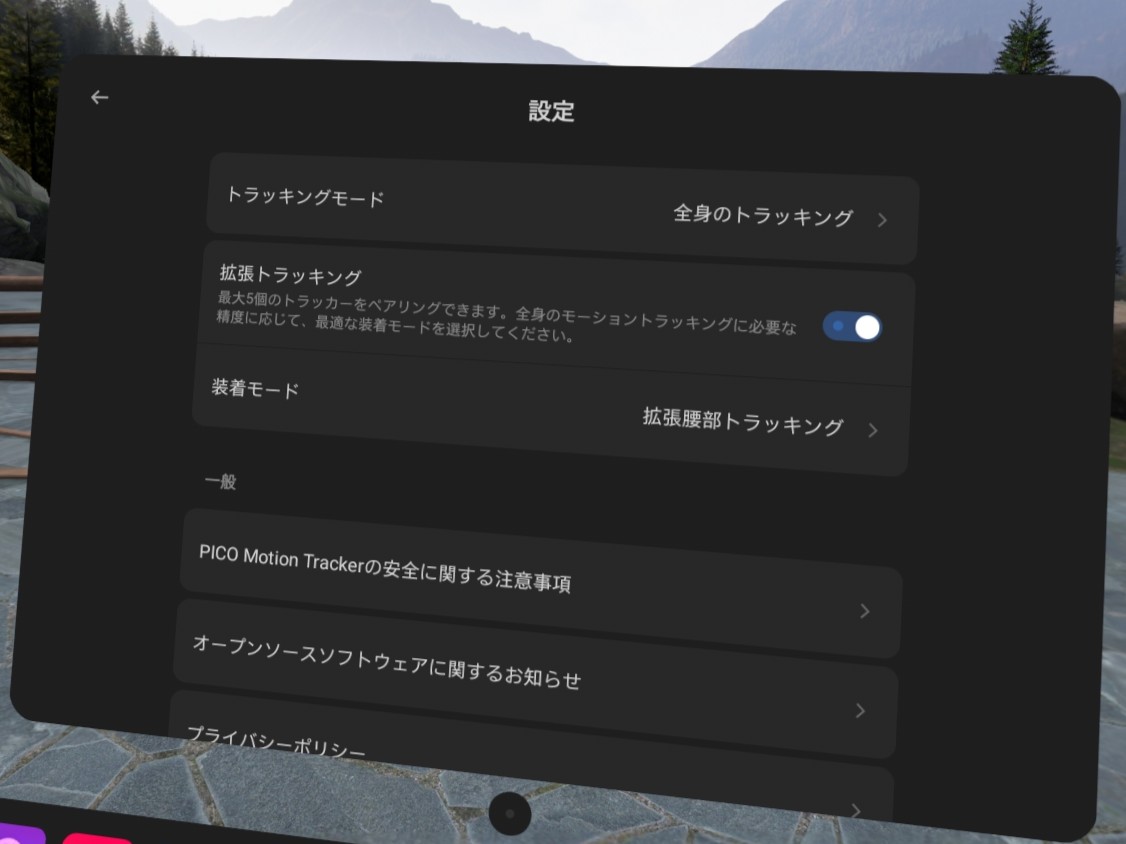 アプリのバージョンが2.0.5となり、装着モードのUIなどが追加されました。Motion Trackerアプリの「設定>拡張トラッキング」を有効にすると、5台までの装着モードを選べます。