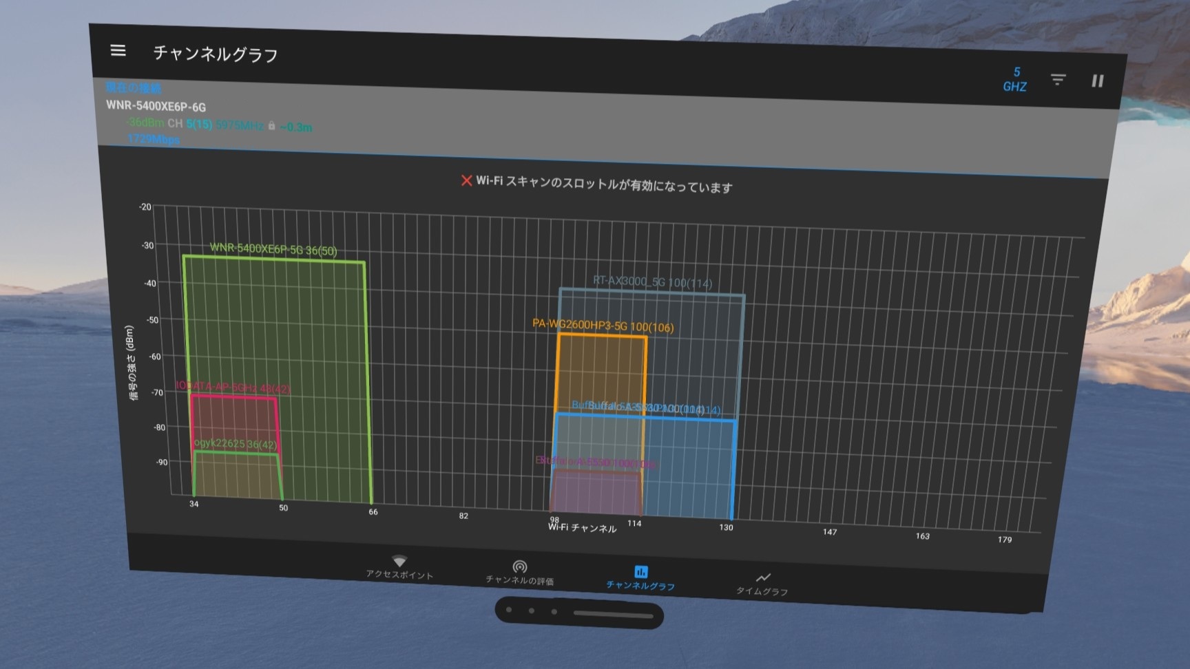 - 周辺のチャンネルと干渉していないかどうかを確認する(スマートフォンでWi-Fi Analyzerなどを使用する)