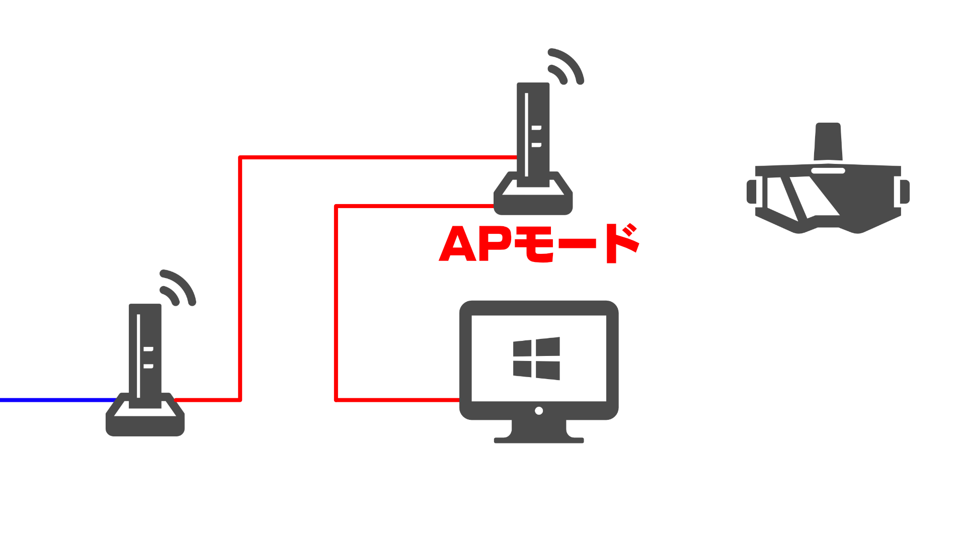 APモードに変更せずルーターモードのまま増設してしまうと、PICO 4 UltraをPICO Connectで検出できなくなったり、PCからプリンターが検出できなくなったりする場合があるので気をつけてください。(※二重ルーターになってしまう)