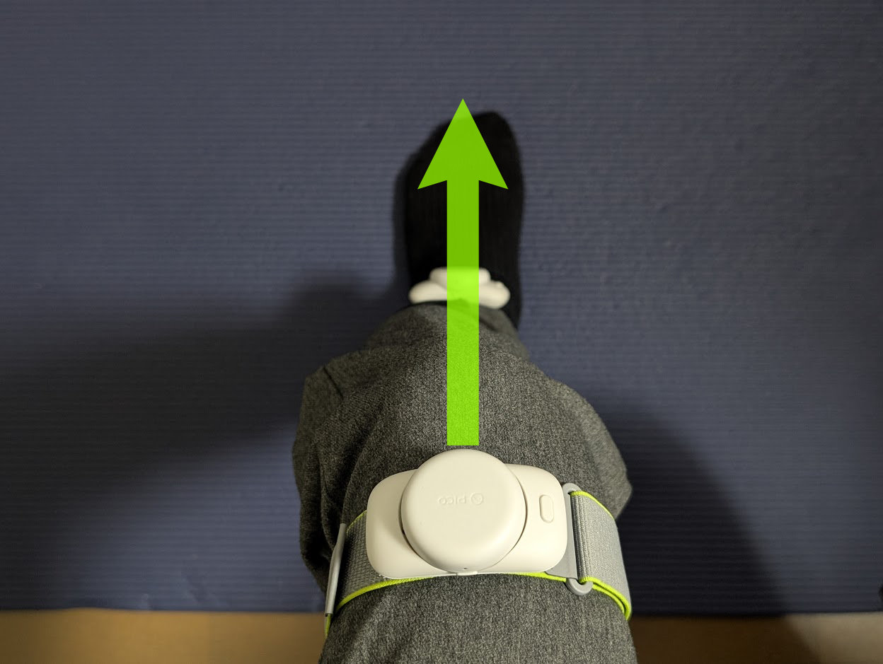 PICO Motion Trackerが視界の外に長時間あると、徐々にズレが生じてきます。時々立ち上がって足元を見たり、服に隠れてしまったトラッカーを見えるようにしてください。