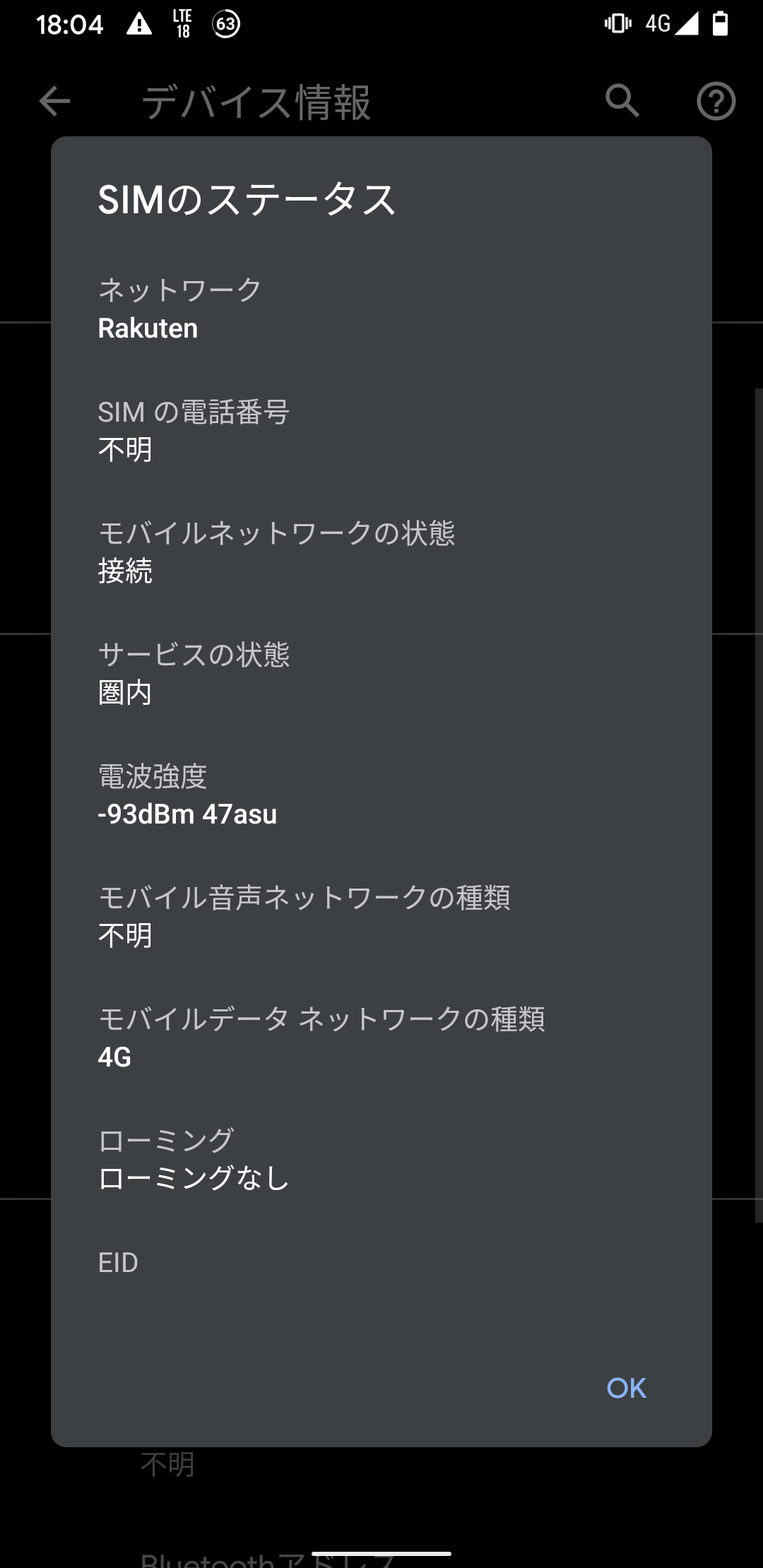 さて、非対応端末では楽天回線、つまりLTE Band 3で接続されている状態でないと楽天Linkを使ったアクティベーションが行えないようなのですが、はてさて困ったことにPixel 3aはBand 18を掴んだまま離さないわけで。