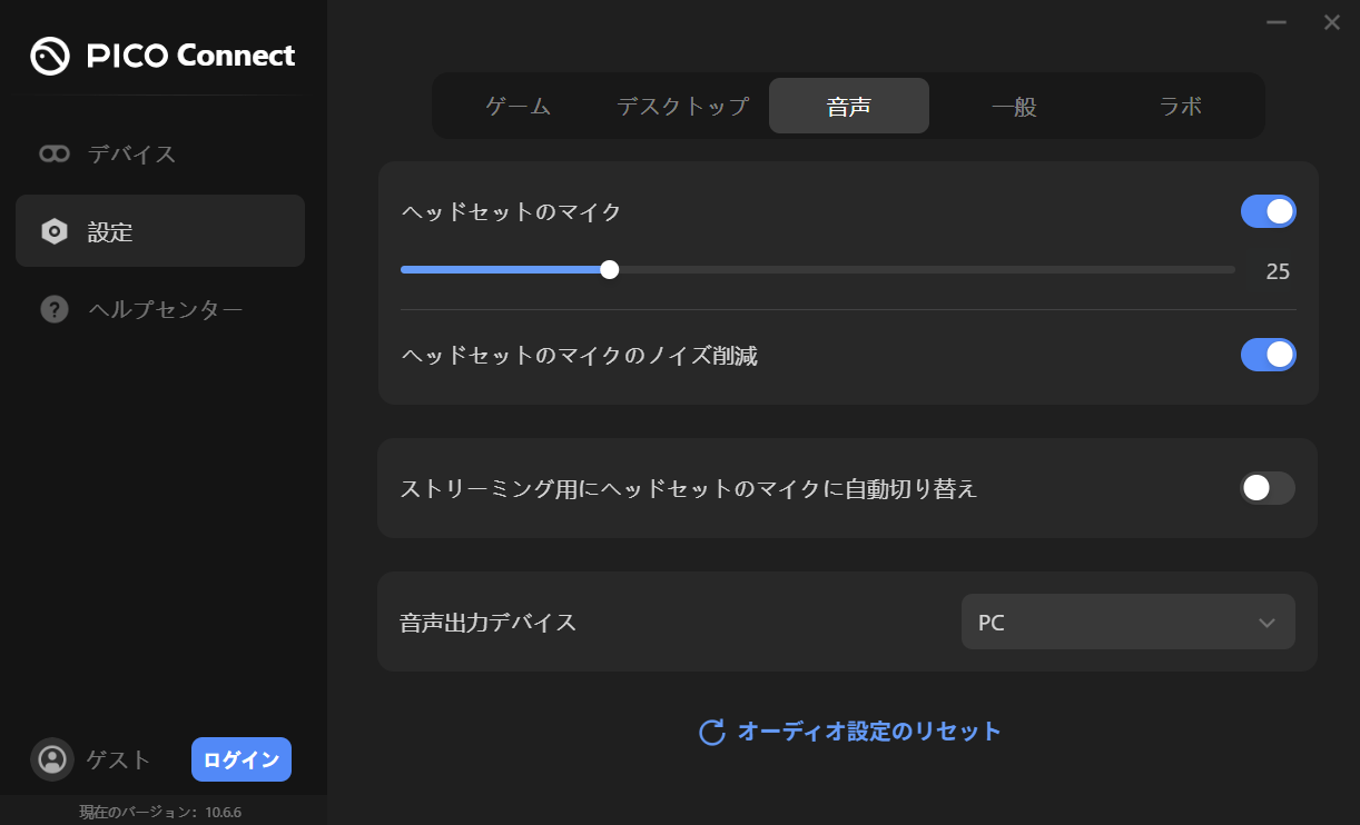 ところで、PICO 4 Ultraのマイク品質が悪いという方は、まずはPICO Connectの音量を20~25%まで下げてみましょう。Virtual Desktopなら10%まで下げます。それでも対処できないのであれば、PICO 4 Ultraのマイクと声の相性が悪いのだと考えられます。人によって声質が異なるので「こうすれば絶対大丈夫」と言い切れないのがツラいところです。