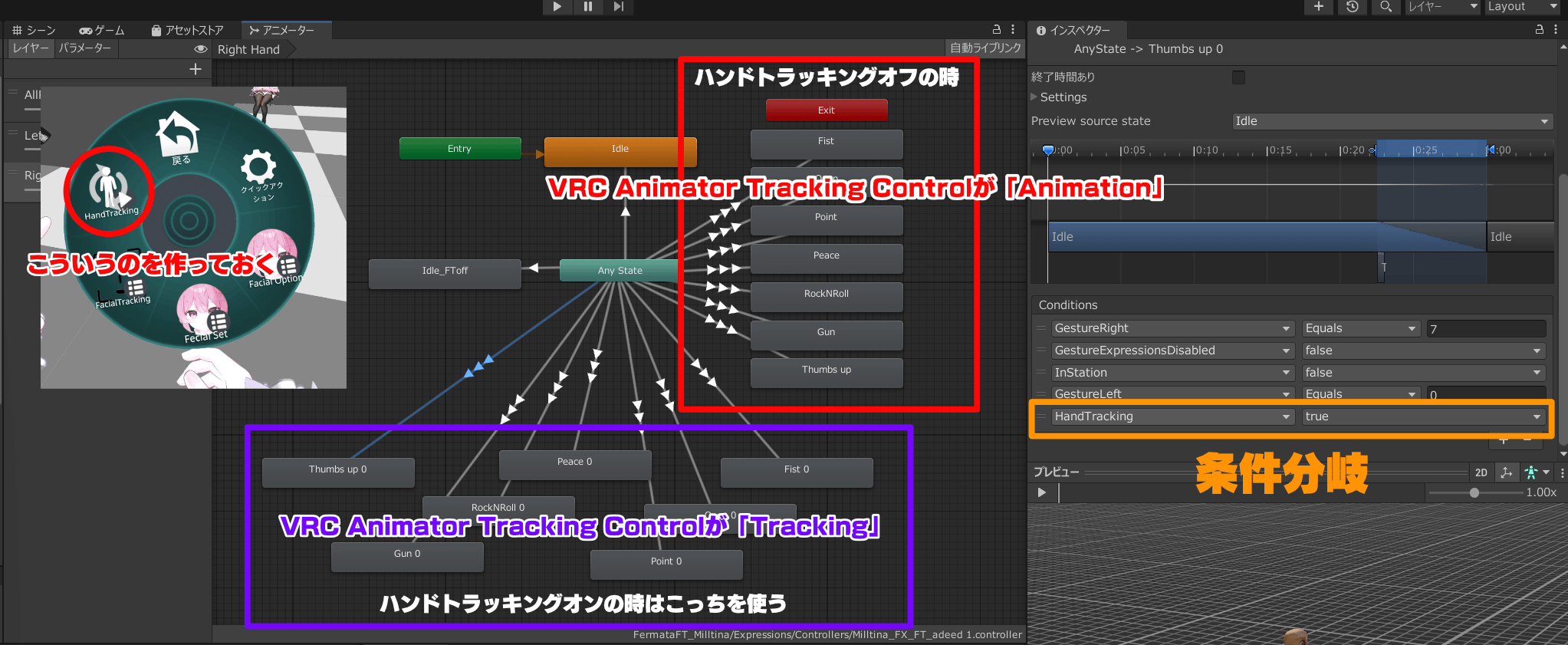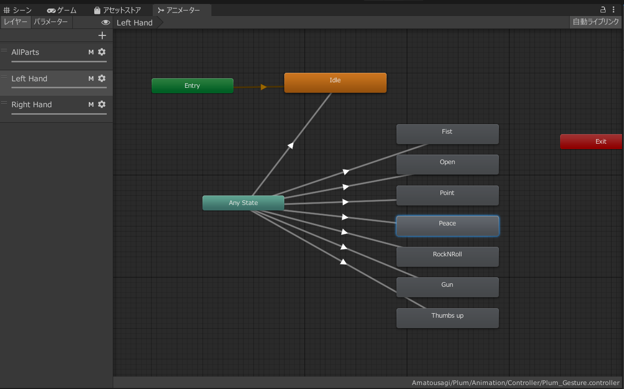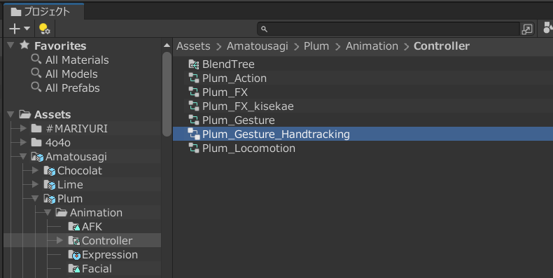 まずはGestureレイヤーに設定されているアニメーションコントローラーを探してください。FXレイヤーではないので、気をつけてください。