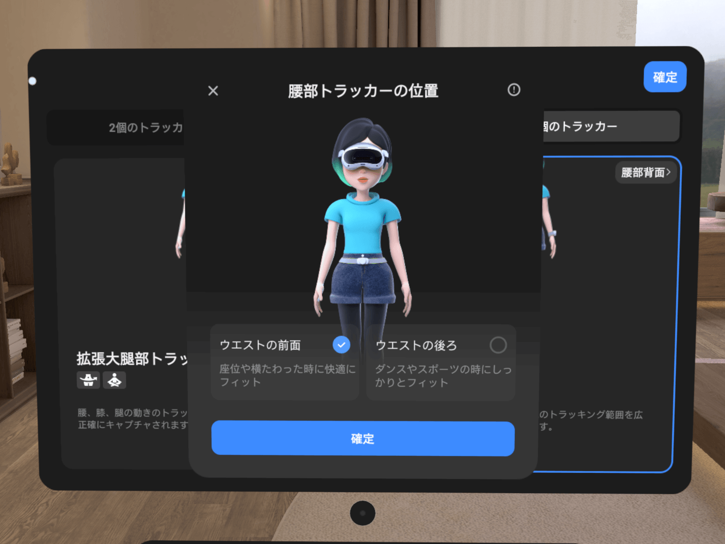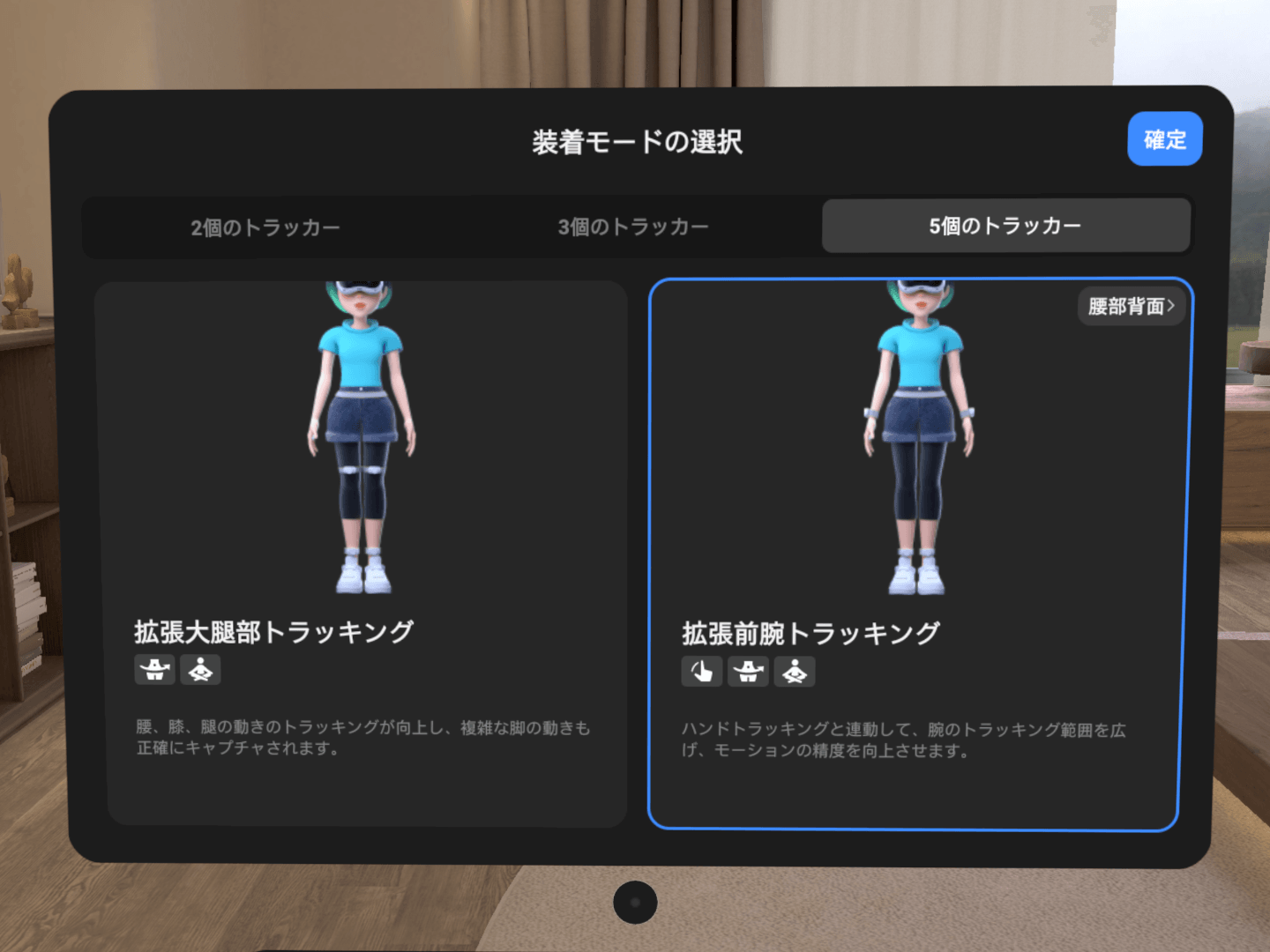 「装着モード」から「5個のトラッカー>拡張前腕トラッキング」を選択して「確定」してください。