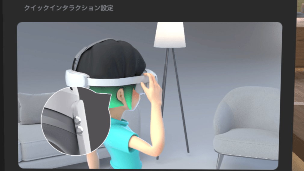 PICO 4 Ultraの音量ボタン上下の同時長押しによる「クイックインタラクション設定」からハンドトラッキングに切り替える事もできます。