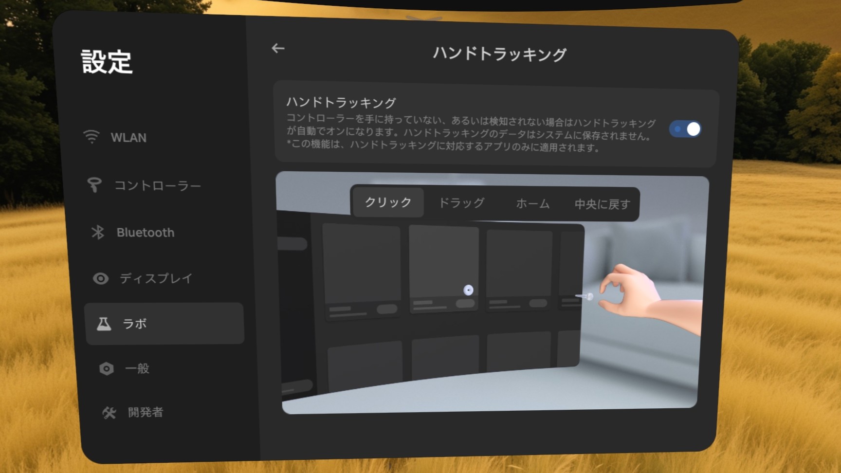 ハンドトラッキングを有効にする
