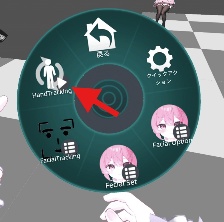 メニューでIndexコントローラー用の設定に切り替えられるアバターであれば、ハンドトラッキング時はそれに切り替えてください。例えば「愛莉」などのアバターが対応しています。