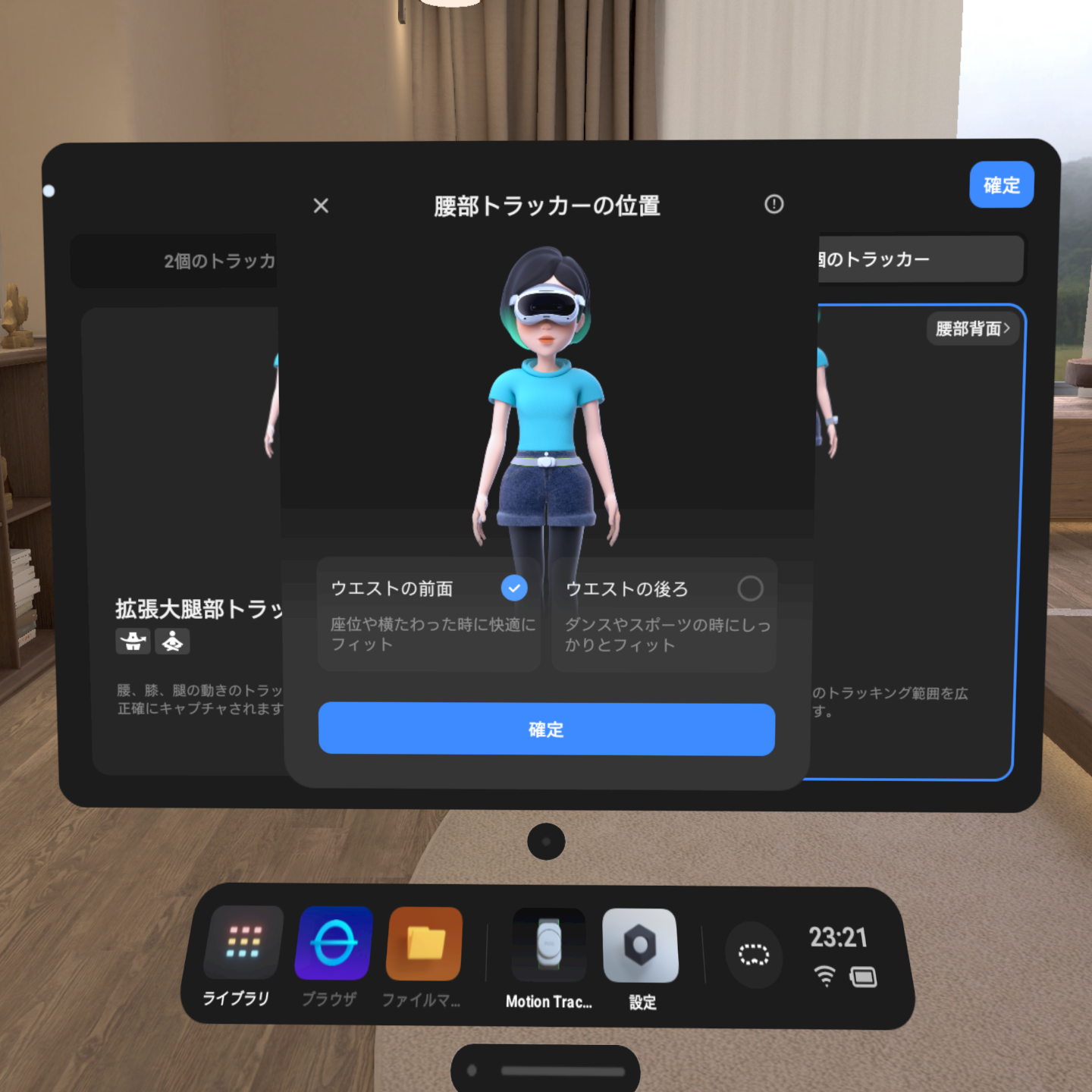 「装着モード」から「5個のトラッカー>拡張前腕トラッキング」を選択して「確定」してください。