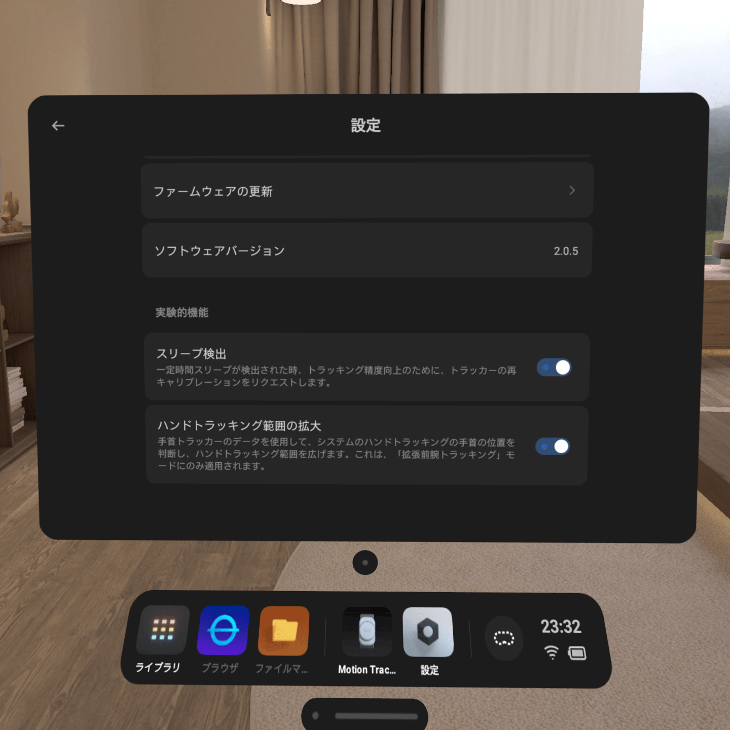 ハンドトラッキングの設定は、「設定>インタラクション」にあります。