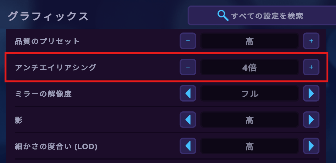 | なし | 2xMSAA | 4xMSAA | 8xMSAA | |