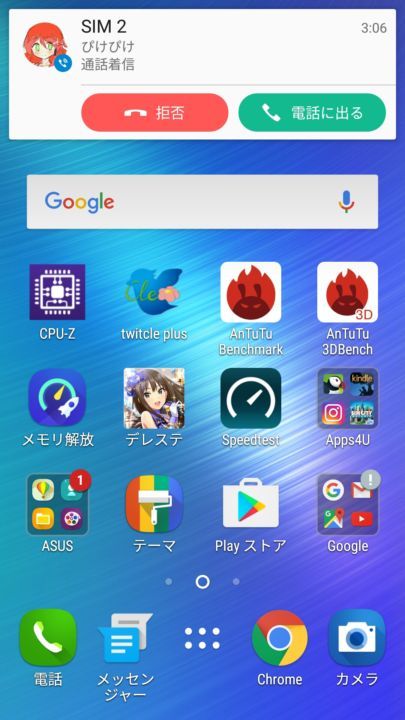 これも詳細はIIJの資料を読んでもらうとして、着信時の相手の電話番号が090-xxxx-xxxxではなく+81 90-xxxx-xxxxで表示されてしまいます。…が、修正アップデートが来ています。(14.40.144.37_20170119)流石ASUSさん。システムパフォーマンスも改善しているようです。